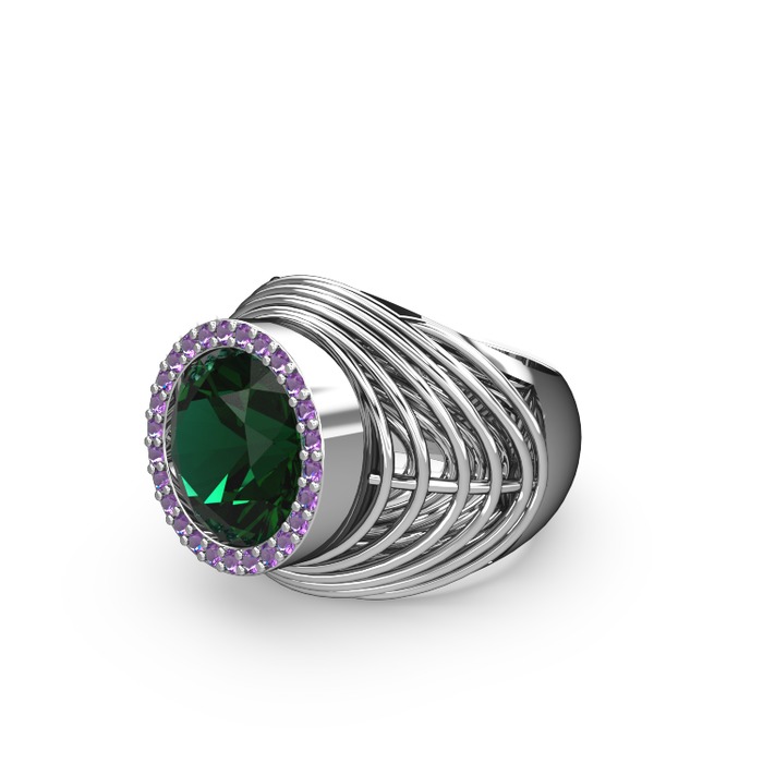 Yeşil kuvars ve ametist 8 ayar beyaz altın yüzük