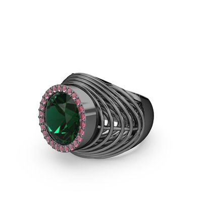 Yeşil kuvars ve kök yakut 925 ayar siyah rodyum kaplama gümüş yüzük