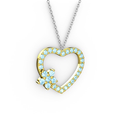 Akuamarin 925 ayar altın kaplama gümüş kolye (40 cm beyaz altın rolo zincir)