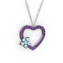 Akuamarin ve ametist 925 ayar siyah rodyum kaplama gümüş kolye (40 cm beyaz altın rolo zincir)