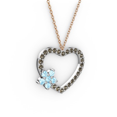 Akuamarin ve dumanlı kuvars 925 ayar gümüş kolye (40 cm gümüş rolo zincir)