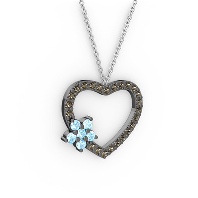 Akuamarin ve dumanlı kuvars 925 ayar siyah rodyum kaplama gümüş kolye (40 cm gümüş rolo zincir)