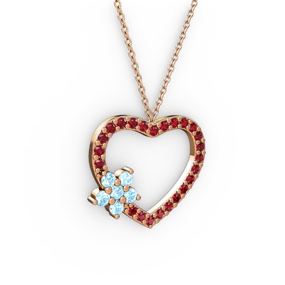 Akuamarin ve garnet 18 ayar rose altın kolye (40 cm gümüş rolo zincir)