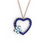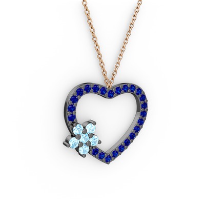 Akuamarin ve lab safir 925 ayar siyah rodyum kaplama gümüş kolye (40 cm rose altın rolo zincir)