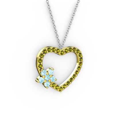 Akuamarin ve peridot 18 ayar altın kolye (40 cm beyaz altın rolo zincir)