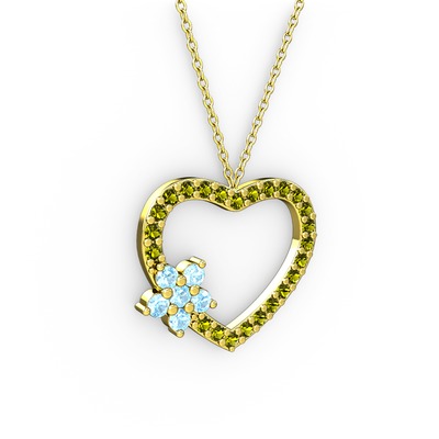 Akuamarin ve peridot 8 ayar altın kolye (40 cm altın rolo zincir)