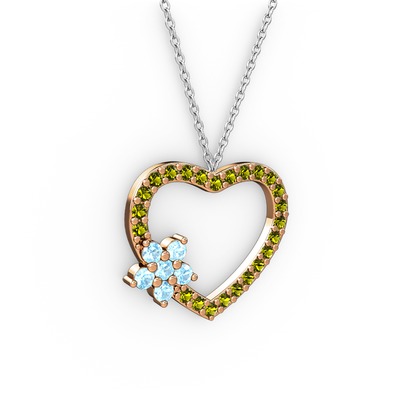 Akuamarin ve peridot 8 ayar rose altın kolye (40 cm beyaz altın rolo zincir)