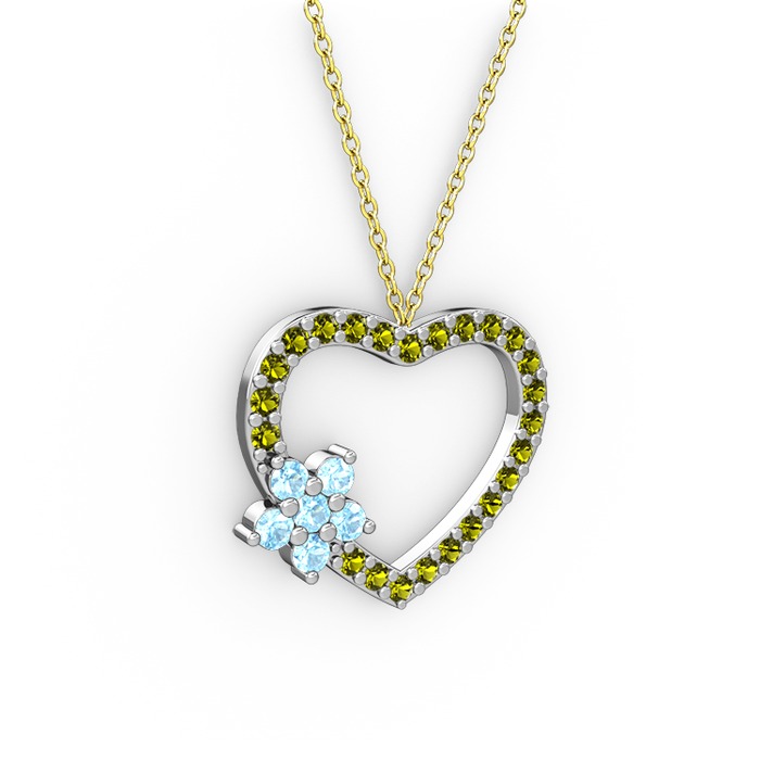 Akuamarin ve peridot 925 ayar gümüş kolye (40 cm altın rolo zincir)