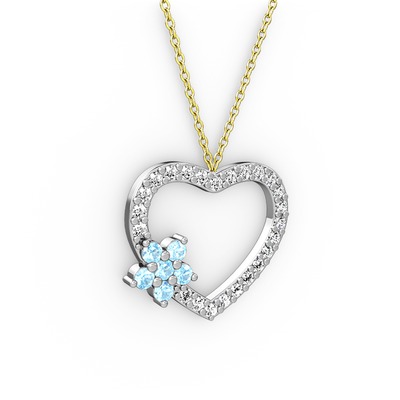 Akuamarin ve pırlanta 925 ayar gümüş kolye (0.36 karat, 40 cm gümüş rolo zincir)