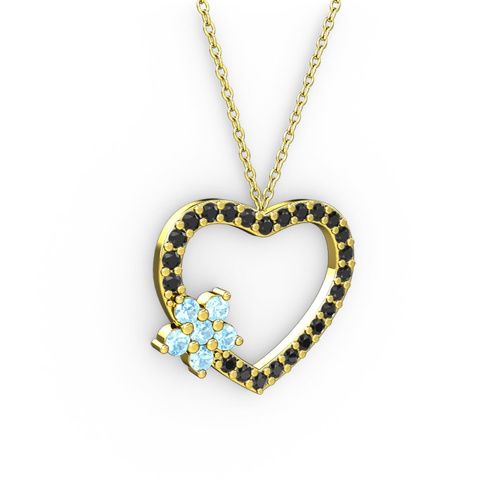 Akuamarin ve siyah zirkon 8 ayar altın kolye (40 cm gümüş rolo zincir)