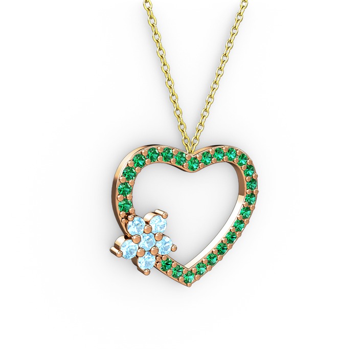 Akuamarin ve yeşil kuvars 18 ayar rose altın kolye (40 cm gümüş rolo zincir)