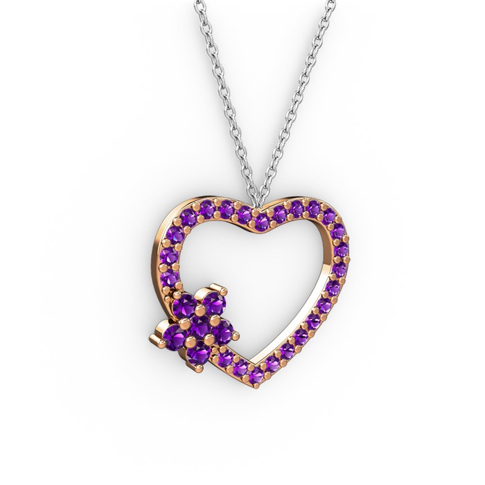 Ametist 18 ayar rose altın kolye (40 cm beyaz altın rolo zincir)