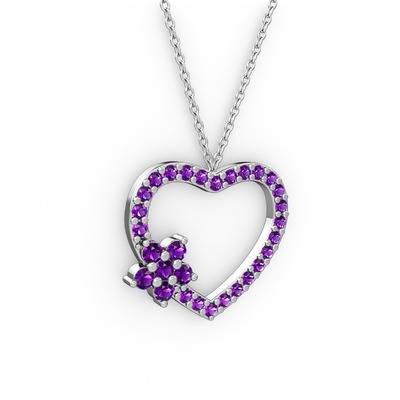 Ametist 8 ayar beyaz altın kolye (40 cm beyaz altın rolo zincir)