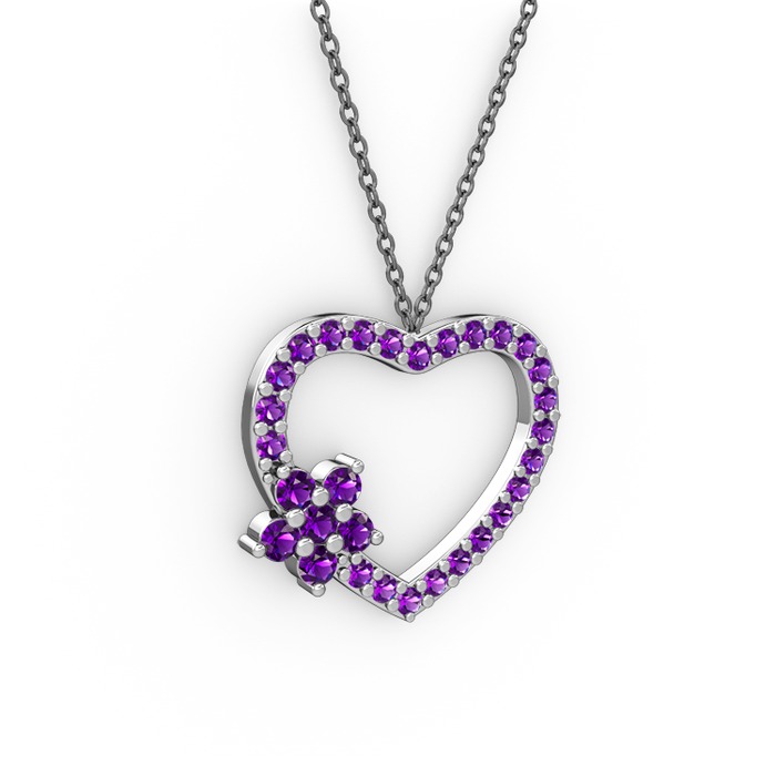 Ametist 8 ayar beyaz altın kolye (40 cm gümüş rolo zincir)