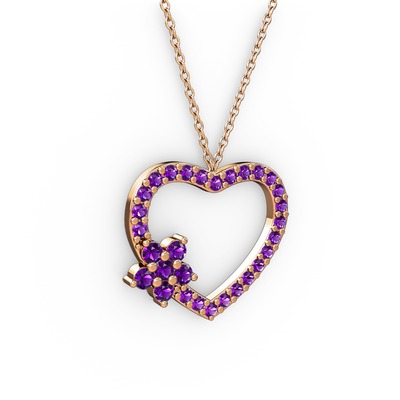 Ametist 8 ayar rose altın kolye (40 cm rose altın rolo zincir)