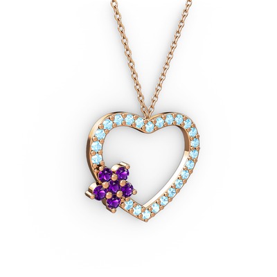 Ametist ve akuamarin 925 ayar rose altın kaplama gümüş kolye (40 cm rose altın rolo zincir)