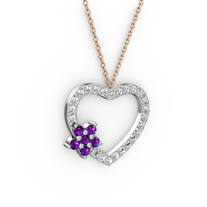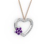 Ametist ve beyaz zirkon 14 ayar beyaz altın kolye (40 cm rose altın rolo zincir)