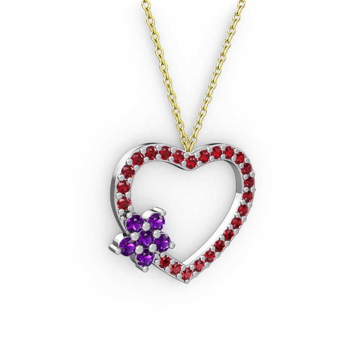 Ametist ve garnet 14 ayar beyaz altın kolye (40 cm gümüş rolo zincir)