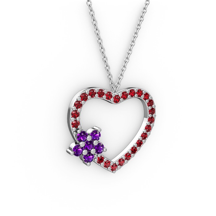 Ametist ve garnet 8 ayar beyaz altın kolye (40 cm beyaz altın rolo zincir)
