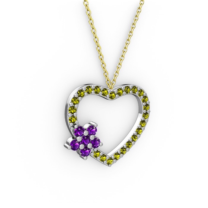 Ametist ve peridot 925 ayar gümüş kolye (40 cm altın rolo zincir)