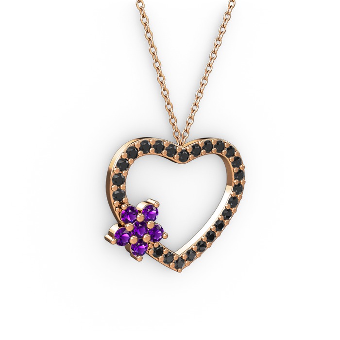 Ametist ve siyah zirkon 14 ayar rose altın kolye (40 cm rose altın rolo zincir)