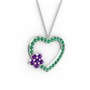 Ametist ve yeşil kuvars 18 ayar beyaz altın kolye (40 cm beyaz altın rolo zincir)