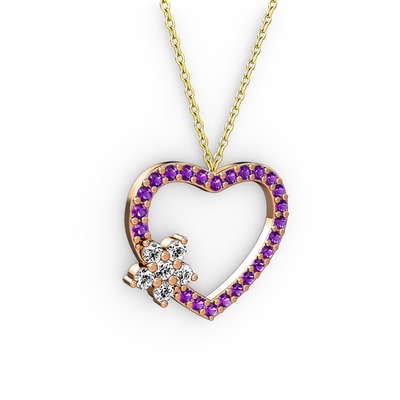 Beyaz zirkon ve ametist 8 ayar rose altın kolye (40 cm altın rolo zincir)
