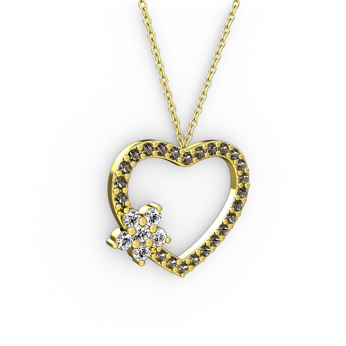 Beyaz zirkon ve dumanlı kuvars 18 ayar altın kolye (40 cm gümüş rolo zincir)