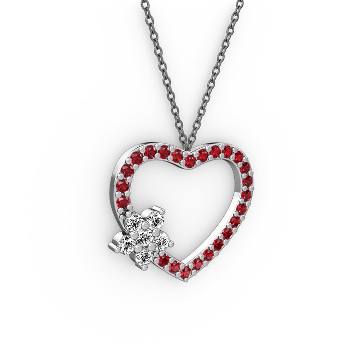 Beyaz zirkon ve garnet 14 ayar beyaz altın kolye (40 cm gümüş rolo zincir)