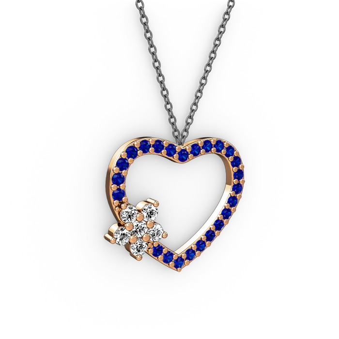 Beyaz zirkon ve lab safir 14 ayar rose altın kolye (40 cm gümüş rolo zincir)