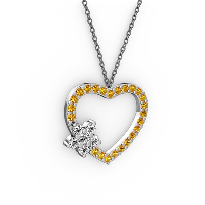 Beyaz zirkon ve sitrin 925 ayar gümüş kolye (40 cm gümüş rolo zincir)