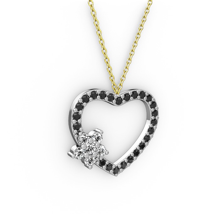 Beyaz zirkon ve siyah zirkon 14 ayar beyaz altın kolye (40 cm altın rolo zincir)