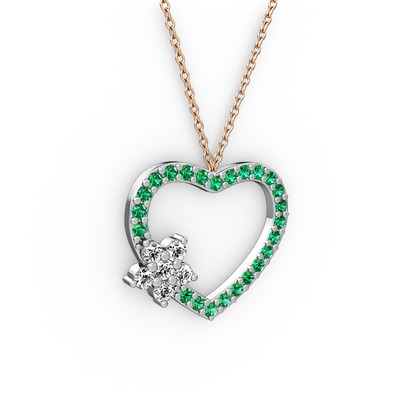 Beyaz zirkon ve yeşil kuvars 14 ayar beyaz altın kolye (40 cm rose altın rolo zincir)