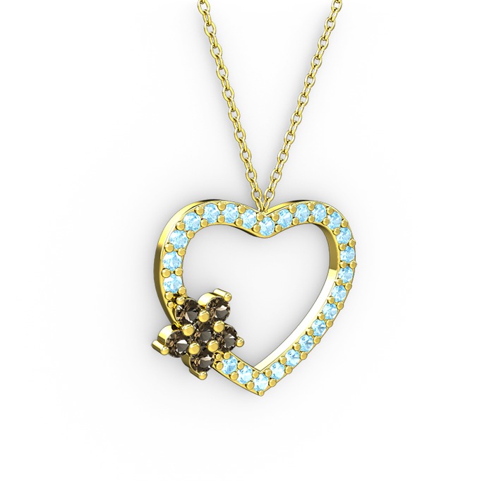 Dumanlı kuvars ve akuamarin 8 ayar altın kolye (40 cm altın rolo zincir)