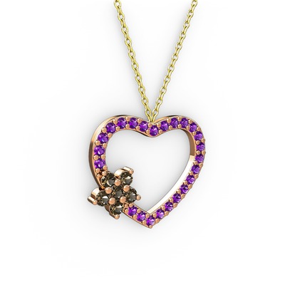 Dumanlı kuvars ve ametist 18 ayar rose altın kolye (40 cm gümüş rolo zincir)