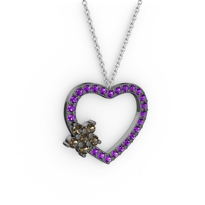 Dumanlı kuvars ve ametist 925 ayar siyah rodyum kaplama gümüş kolye (40 cm beyaz altın rolo zincir)