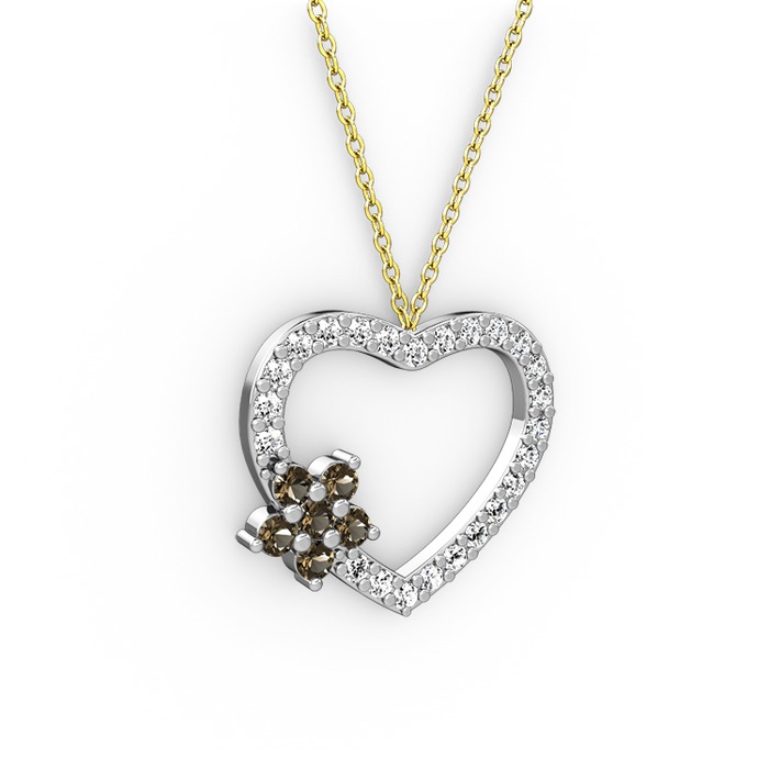 Dumanlı kuvars ve beyaz zirkon 14 ayar beyaz altın kolye (40 cm altın rolo zincir)