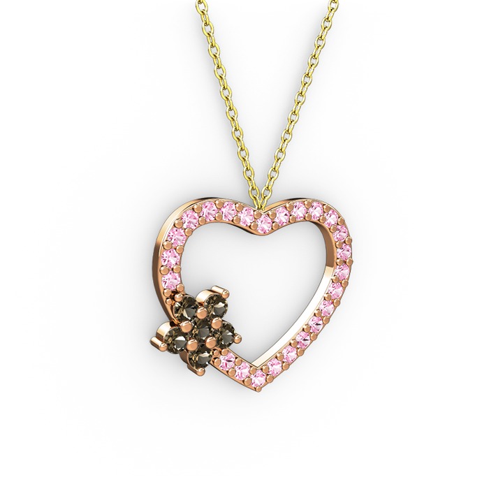 Dumanlı kuvars ve pembe kuvars 18 ayar rose altın kolye (40 cm altın rolo zincir)