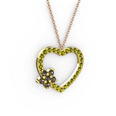 Dumanlı kuvars ve peridot 14 ayar altın kolye (40 cm rose altın rolo zincir)