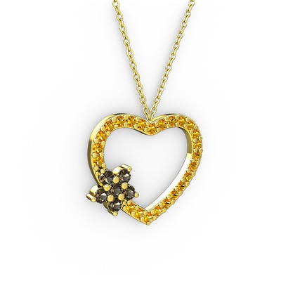 Dumanlı kuvars ve sitrin 18 ayar altın kolye (40 cm altın rolo zincir)