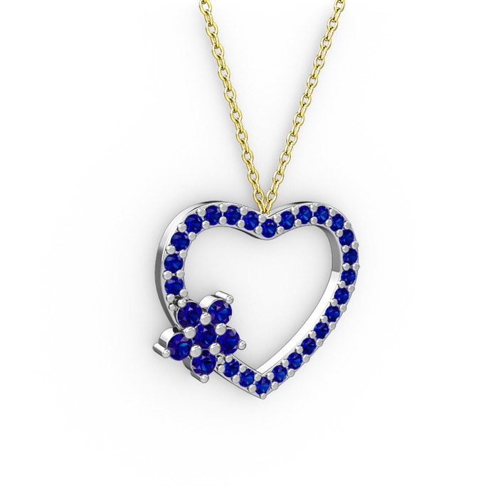 Lab safir 14 ayar beyaz altın kolye (40 cm altın rolo zincir)