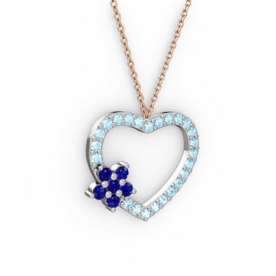 Lab safir ve akuamarin 925 ayar gümüş kolye (40 cm rose altın rolo zincir)