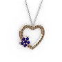 Lab safir ve dumanlı kuvars 18 ayar rose altın kolye (40 cm beyaz altın rolo zincir)
