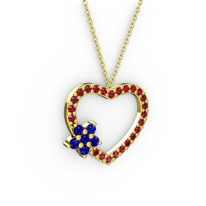 Lab safir ve garnet 18 ayar altın kolye (40 cm altın rolo zincir)
