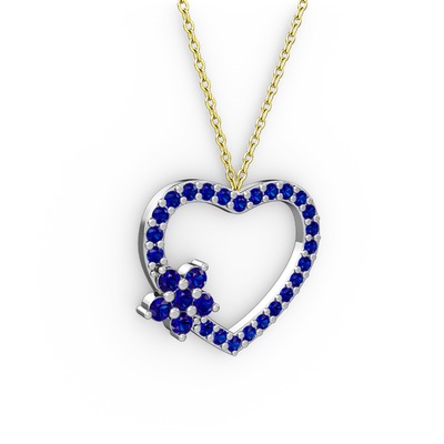 Lab safir 925 ayar gümüş kolye (40 cm altın rolo zincir)