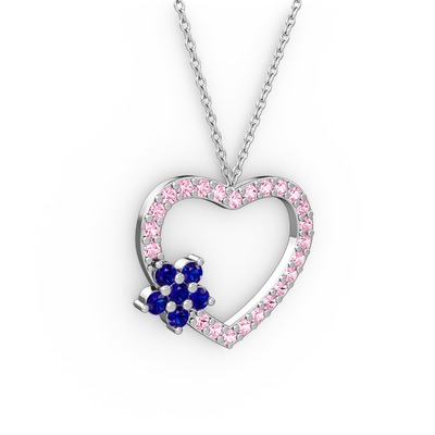 Lab safir ve pembe kuvars 18 ayar beyaz altın kolye (40 cm beyaz altın rolo zincir)