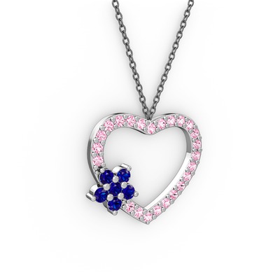 Lab safir ve pembe kuvars 8 ayar beyaz altın kolye (40 cm gümüş rolo zincir)