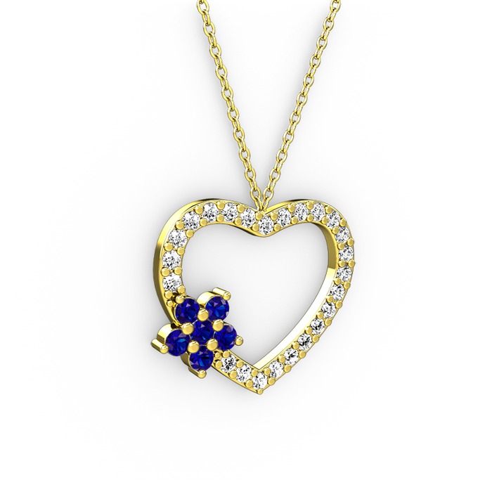 Lab safir ve pırlanta 18 ayar altın kolye (0.36 karat, 40 cm altın rolo zincir)