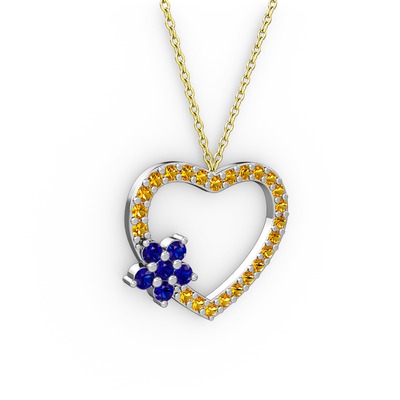 Lab safir ve sitrin 925 ayar gümüş kolye (40 cm altın rolo zincir)