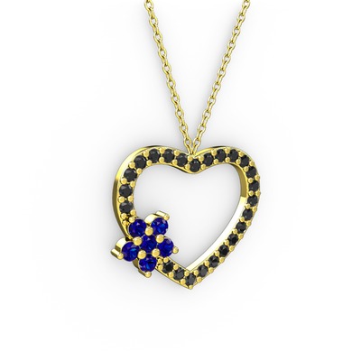 Lab safir ve siyah zirkon 925 ayar altın kaplama gümüş kolye (40 cm altın rolo zincir)